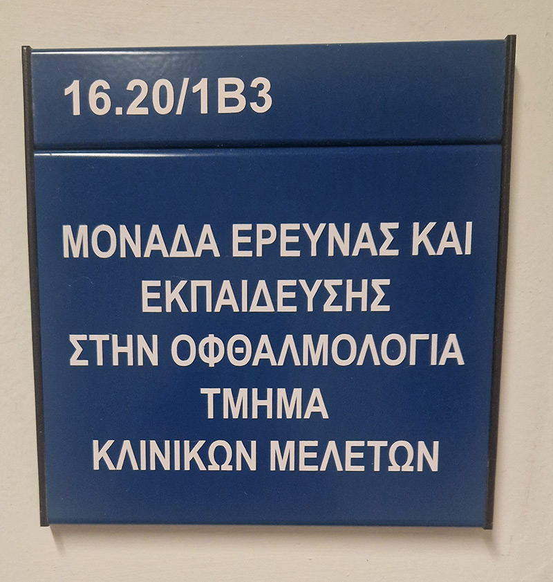 Στην Κλινική υπάρχει ειδικό Τμήμα Κλινικών Μελετών, το οποίο είναι πιστοποιημένο και συμμετέχει σε μελέτες σε συνεργασία με κέντρα του εξωτερικού, καθώς ανήκει στο Ευρωπαϊκό δίκτυο European Vision Clinical Research network (EVICR.net). Είναι άρτια εξοπλισμένο με τελευταίας τεχνολογίας μηχανήματα και πληροί τις αρχές διεξαγωγής κλινικών μελετών (good clinical practice).